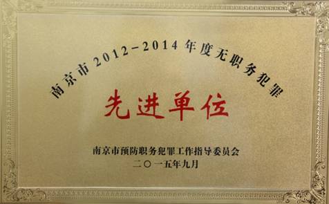 南京市2012——2014年度無(wú)職務(wù)犯罪先進(jìn)單位